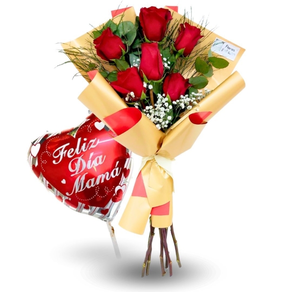 6 Rosas Ecuador Degradé + Globo 40 cm estampado